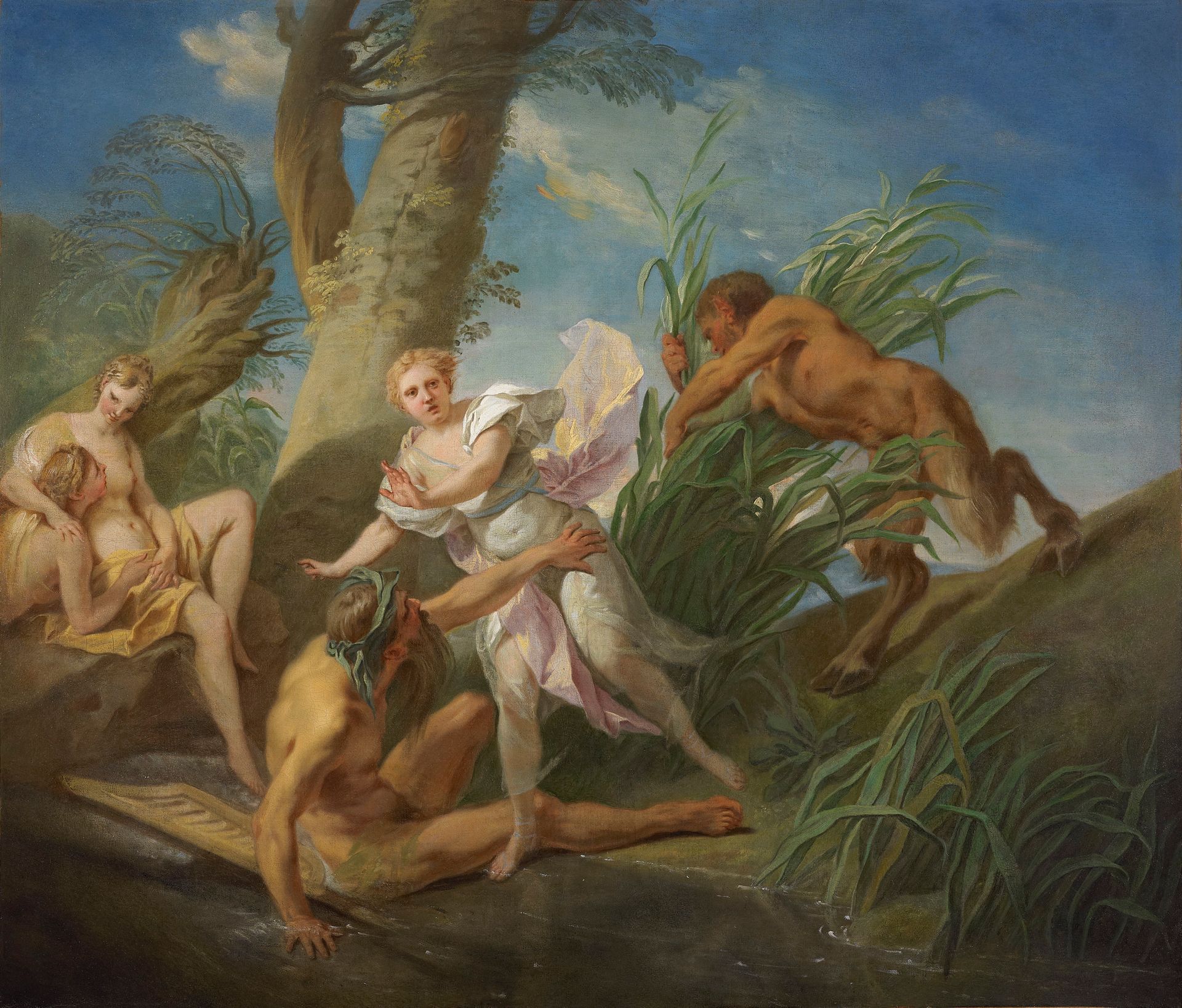 Cependant, son premier grand programme mythologique indépendant connu est constitué par les plafonds de la coupole et du grand salon du Pavillon Lenfant à Aix-en-Provence, peints en 1711-1712, qui représentent les histoires des fils de Zeus, Hermès et Apollon. Au-dessus de la cage d'escalier à double spirale se déroule l'histoire d'Hermès, dieu du commerce, de la richesse, de la chance, de la fertilité, des troupeaux, du sommeil, du langage, des voleurs et des voyageurs, et inventeur d'instruments dont la lyre et la syrinx. C'est dans ce contexte que la "syrinx" apparaît pour la première fois dans son œuvre, à notre connaissance ; il s'agissait d'un instrument fabriqué à partir de tubes collés ensembles inventé pour son propre amusement lors d'un tour joué à son frère Apollon. Au-dessus du grand salon, on peut voir l'histoire d'Apollon.