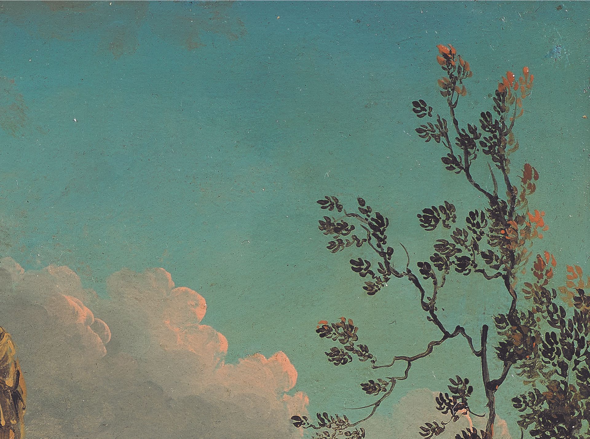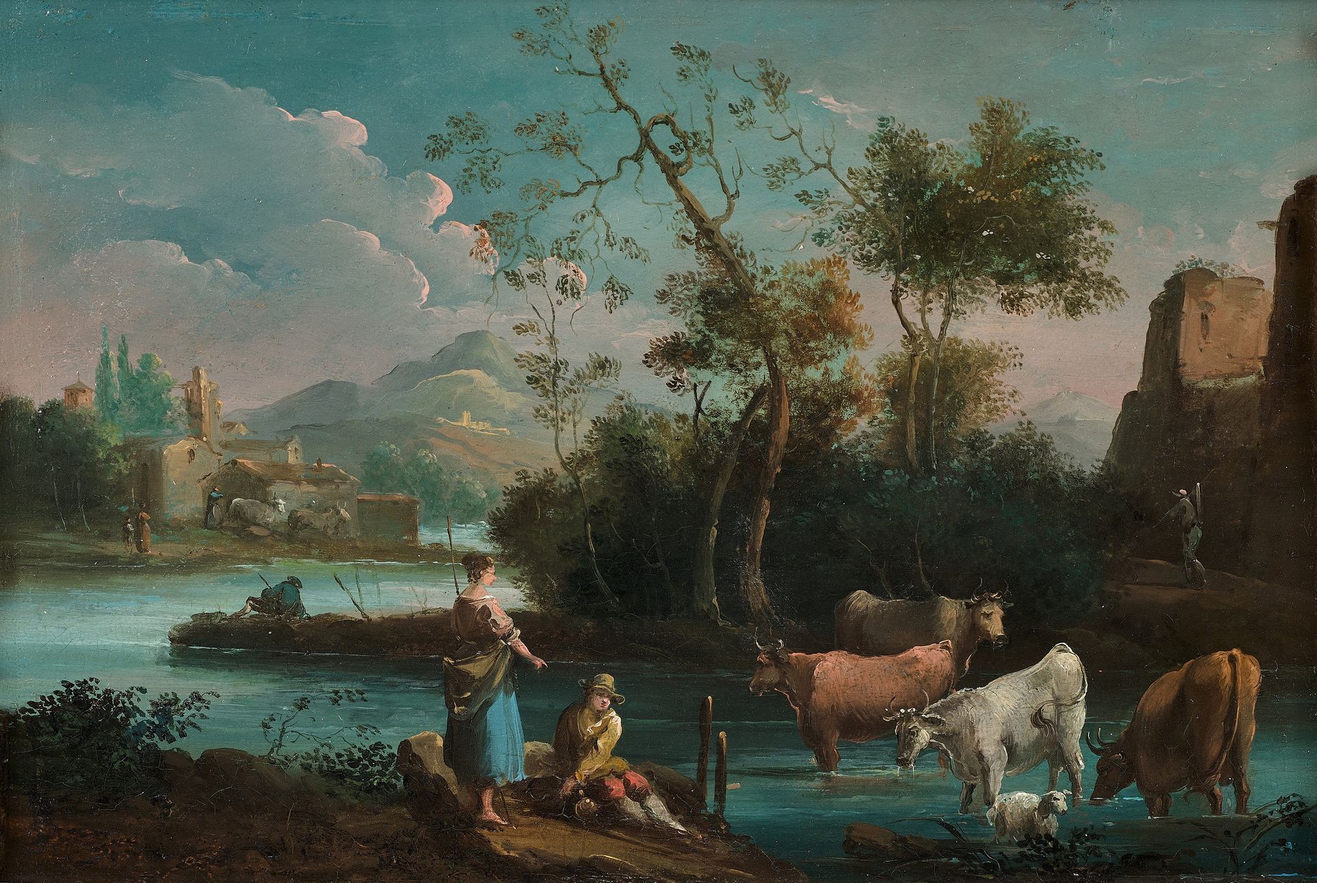 The nephew of Sebastiano Ricci (1659-1734), Marco probably began his career in his uncle's Venetian workshop, after leaving their hometown of Belluno in the Veneto mountains. He then worked in Rome, where he stood out as a landscape and perspective painter. Subsequently he went to England (1708-1710) and he achieved no less success there. It has been suggested that Ricci may have learned the technique of tempera on kidskin during his second trip to England (1712–16) where he had traveled in the company of his uncle. After his return to Venice in 1716, he made constant use of this technique, executing numerous landscapes in great demand by European and English collectors (see Succi and Delneri, op. cit., p. 21). In 1717, he collaborated with his uncle on the Miracle of Moses, preserved at the Academy. He also worked in many cities in Italy. Through his uncle, he had been influenced by Neapolitan landscape painters and that of Magnasco. He was the initiator of landscape painting in Venice. In the last years of his life, he readily composed imagined landscapes embellished with classical ruins.