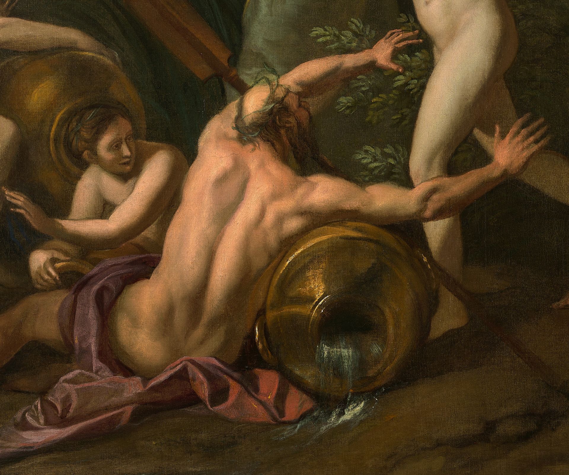 Others were also identified on the art market during the preparation of the Caen museum retrospective. This is the case for a Moses and the Brazen Serpent, of a Sacrifice of Isaac, of a Christ at Emmaus (Ibid., p. 86-87, repr.) or even of a Danae (Ibid., p. 248, repr.). Now, it is precisely to this very rare category – that of the “easel painting” – that our painting belongs. If we also consider the mythological subject in question, this one therefore appears to be the second of its kind to have been found after the Danae (which must in fact be the portrait of a nude woman as Danaë). It is also worth noting a pair of sketches of mythological subjects sold at Sotheby's, whose style is similar to that of our painting (Louis CHERON, Venus and Adonis/Diana and Endymion, signed, canvas, 50.5 x 36.5 cm, Sotheby's London 08/12/2005, lot no. 326) (fig. 1 & fig. 2). Several aspects, in our painting, confirm its classification under the name of Louis Chéron. We note first that Daphne's legs are articulated exactly like those of Hermaphroditus as he appears in one of the drawings in the "Derby Album" of the British Museum (Ibid., p. 95, fig. 100;fig.3. Let us also note the same kind of large, oblique tree trunks without any branching. We can also compare our table to the Danae, which reveals a properly plastic sense just as pronounced. Tightened at the knees, the legs of the Danae move away from each other as you go down towards the feet. One of the putti lying on the ground, in our painting, adopts exactly this strange pose at the level of the legs. The yield of the sky is the other striking common point between the two paintings (a remark which also applies, moreover, to Christ at Emmaus by Louis Chéron cited above), but also with the pair sold at Sotheby's in 2005 (Fig. 1 & Fig. 2). We notice the same type of twilight sky covered with golden clouds. What's more, these clouds are painted with the same sketched touch, the brush following a slightly undulating path. Given the style and the canons of the figures, our painting must be dated around 1720, which saw Louis Chéron at the height of his career with the founding of his own art school.