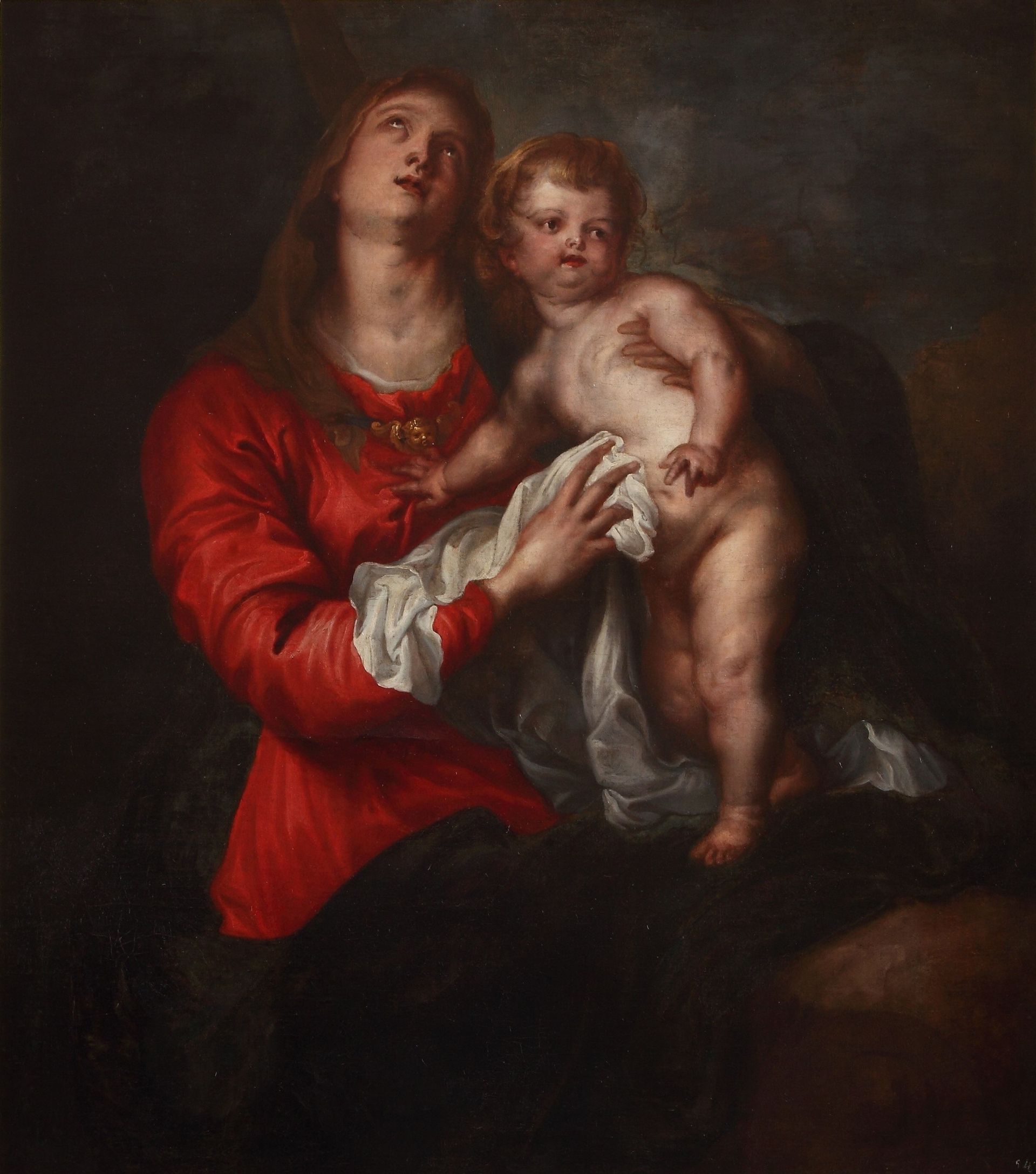 - Antoine van Dyck, copie, Vierge à l'Enfant, huile sur cuivre, 17 x 22 cm (Van Dyck en Espana, Matthias Diaz Padron, 2012, page 690, cat. A7) (fig. 1)